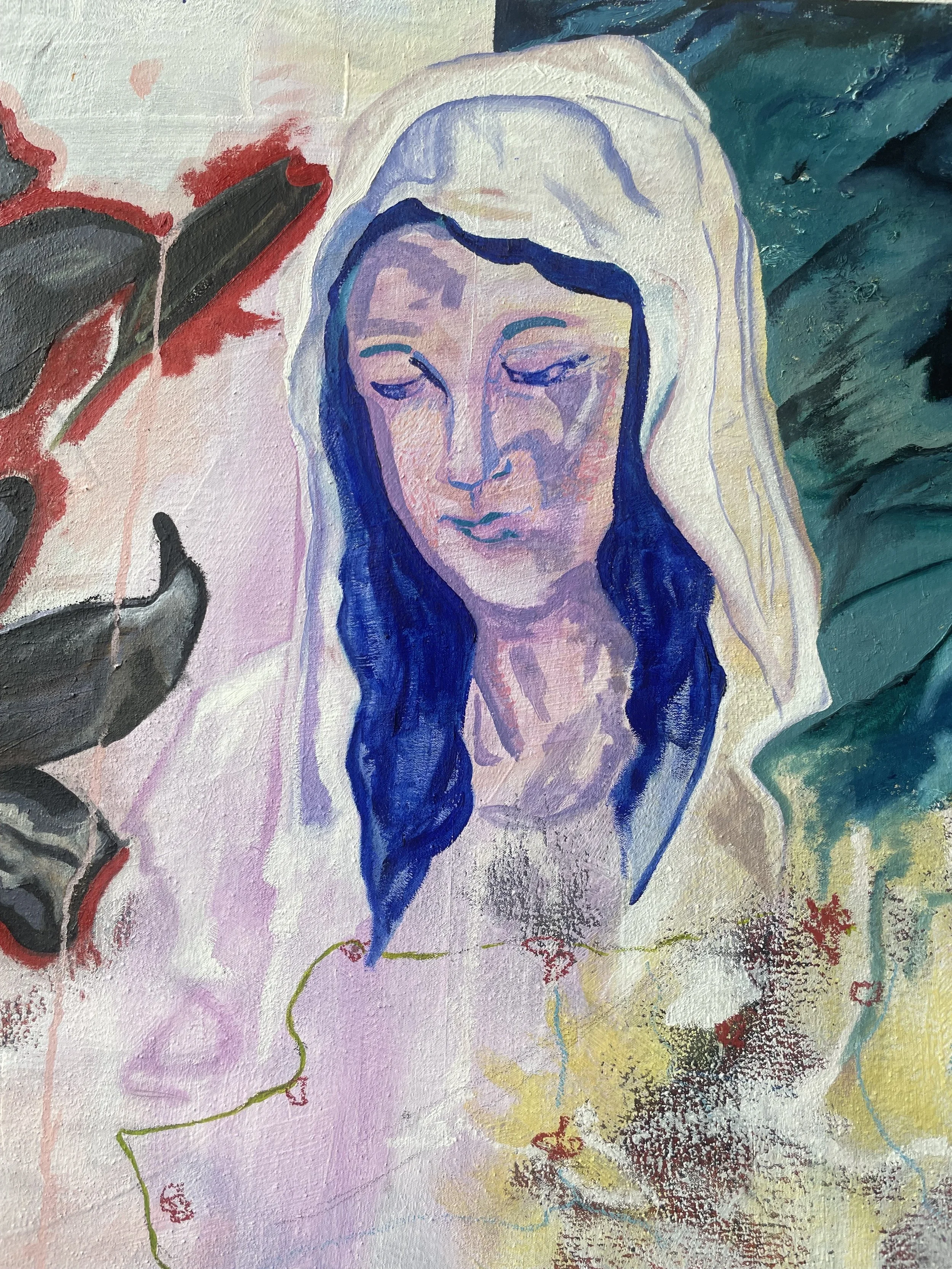 Cassandra’s work explores the intersection of time and memory through narratives rooted in personal experience. She centers female figures—often composites of multiple influences—to honor the women who have shaped her life. By depicting them nude, she emphasizes vulnerability, approached through a distinctly female lens. Her work engages themes of cultural identity, religion, and personal history. It reflects a deep commitment to exploring the complexities of belonging, belief, and memory, drawing from lived experience to create visually layered narratives that invite reflection and connection. Through painting, she speaks to these ideas and their metaphorical potential.